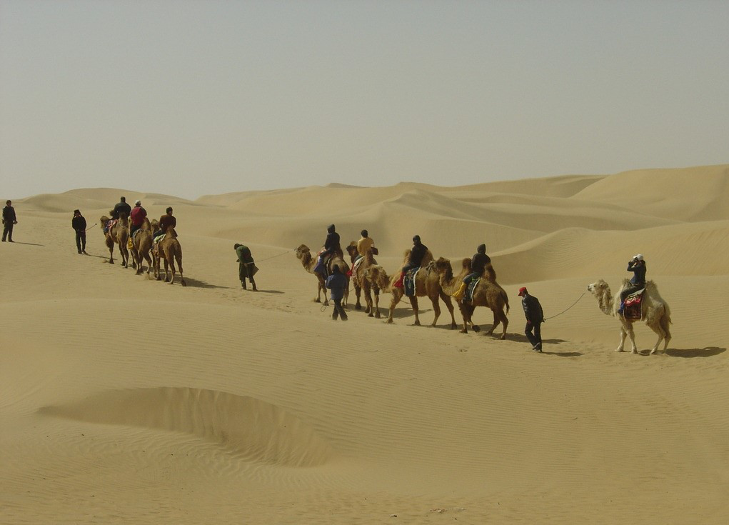 丝绸之路漫长,汉唐以来通往西域的三条道路,无不是戈壁连着戈壁,沙漠连着沙漠,形成绵延数千里的瀚海奇观。这些沙漠大部分为移动沙漠,风来沙走,漫天黄尘,而且多为不毛之地,干旱异常,经年不见绿色,非有骆驼不能度越。