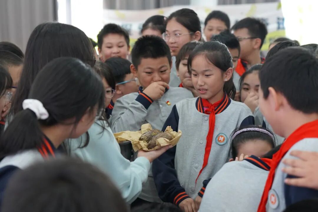 为了让同学们获得更直观深刻的体验,我馆特别为本次活动准备了珍贵的教学标本,包括熊猫粪便标本和恐龙蛋化石标本。当这些平日里只能在博物馆展柜中见到的实物出现在课堂上时,立刻引发了同学们极大的好奇与惊叹。在张老师的引导下,同学们通过近距离观察和亲手触摸,不仅学到了辨别熊猫食性的科学方法,也感受到了生命演化的神奇轨迹。这种寓教于乐的互动方式,将现场气氛一次次推向高潮,也让复杂的自然生态知识变得通俗易懂、深入人心。