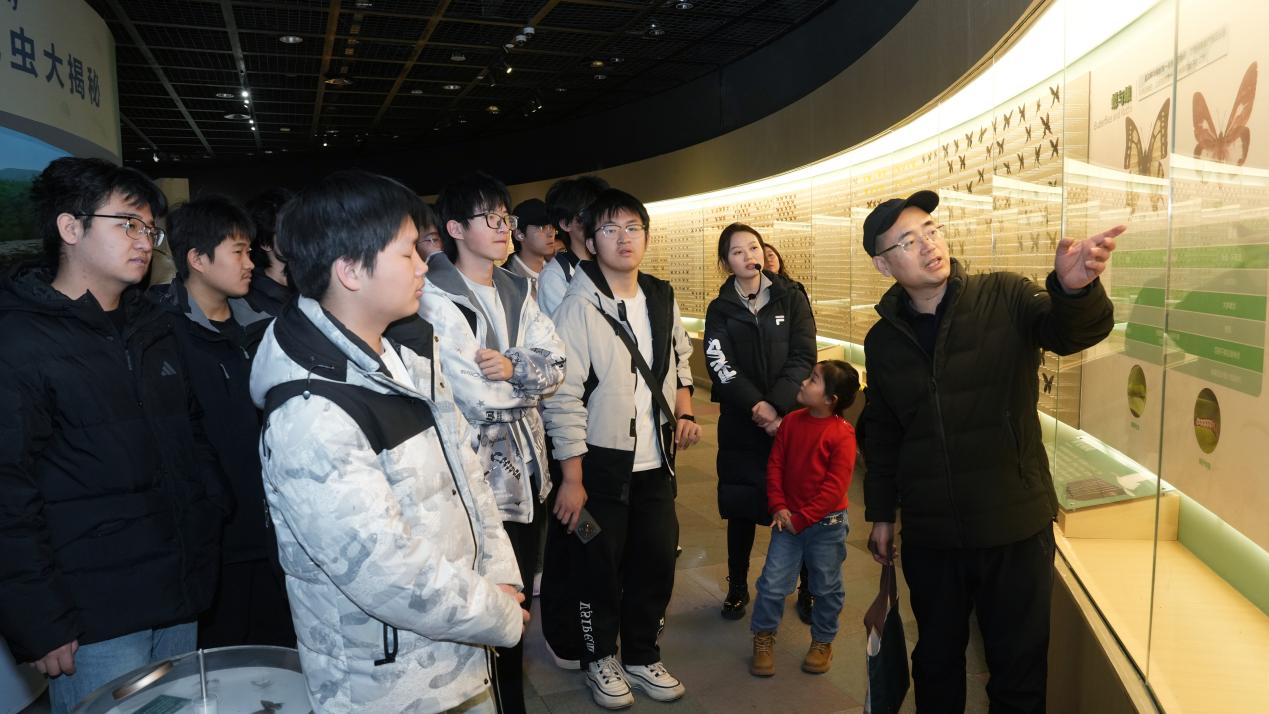 1月14日,陕西自然博物馆迎来一批充满朝气的青年学子——西北大学地质系韩健教授、常超副教授带领153名大一新生来馆开展校外实践活动。博物馆精心安排,由专业讲解员引导学生重点参观了与地质学科紧密相连的地质万象展厅、古生物长廊展厅及神奇秦岭展厅,将抽象的理论知识与鲜活的自然标本相结合,打造了一堂生动深刻的“移动专业课”。