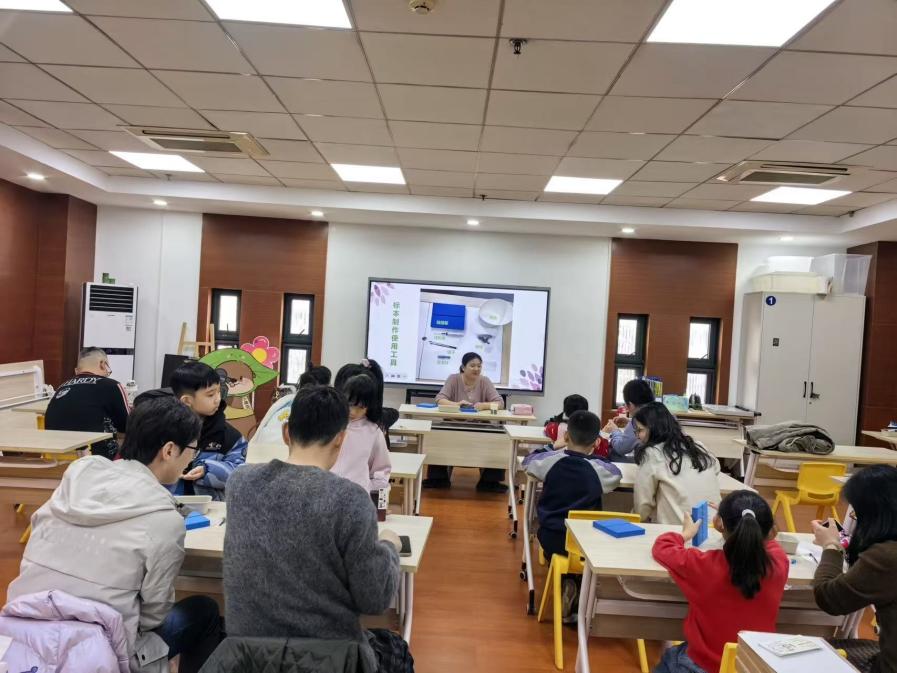 亲子共学手作实践环节成为本次半日营的亮点,科普老师从昆虫针的正确使用、蝴蝶上板固定,到硫酸纸压翅、翅型调整定型,每一个细节都耐心讲解、手把手指导,亲子家庭分工协作,家长化身 “专属助手”,协助孩子固定标本、传递工具,孩子们则小心翼翼地用镊子调整蝶翅,专注完成每一个制作步骤,在亲手操作中了解蝴蝶的身体构造,感受传统标本制作技艺的严谨与趣味。当一只只色彩绚丽的蝴蝶在展翅板上定格最美姿态,孩子们的脸上满是成就感,这份亲手制作的标本也成为探索自然的珍贵纪念。