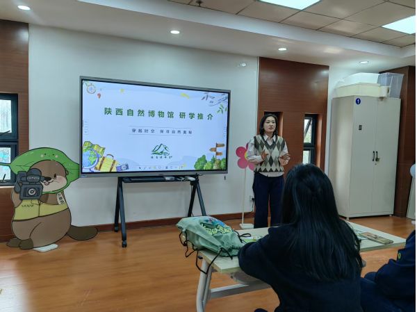 活动伊始,陕西自然博物馆研学教育负责人作专题推介,围绕场馆核心展示资源、配套服务设施、系统化研学课程体系等内容展开细致讲解,全面展现博物馆完备的研学基础与深厚的科普底蕴。现场同步播放研学整体宣传片,直观呈现场馆研学项目全貌,穿插播放恐龙探秘、化石考古、河狸生态等特色精品课程视频,以生动具象的形式,全方位展现博物馆研学的趣味性、专业性与实践价值,让参会来宾真切感受到科普教育与研学实践深度融合的独特魅力。