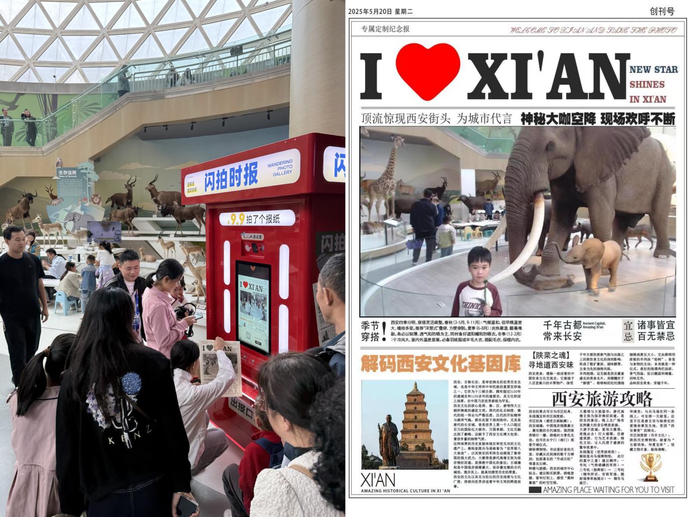 这个“十一双节”期间,陕西自然博物馆悄悄带来了一份 “科普新体验”—— 自助拍报机,一亮相就点燃了游客体验的热情,成为当之无愧的“网红打卡地”!拍报机前的游客络绎不绝,拿到印着自己照片和博物馆信息的专属报纸时,大家都忍不住拍照分享,现场热闹又温馨。