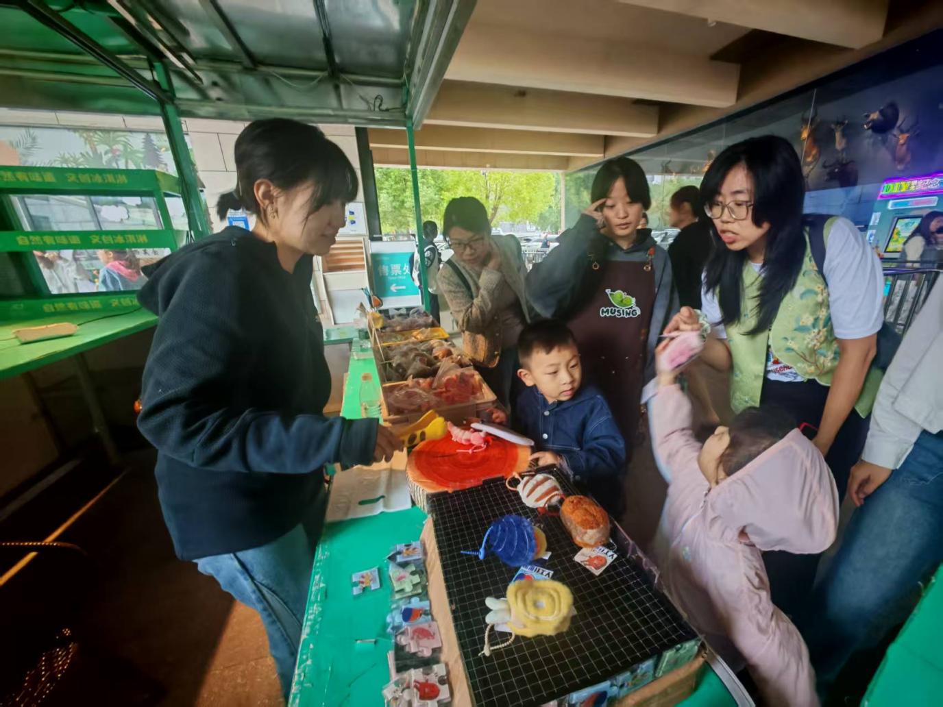 走进快闪店,以虾爬、蛤蜊将等海洋生物为原型的 “东海打工人” 毛绒玩偶错落陈列,憨萌造型与 “职场共鸣”文案巧妙结合,瞬间吸引亲子家庭与年轻游客驻足。“既能逛展学自然知识,又能带走有温度的文创,这种体验太贴心了”,一位年轻游客的评价道出众多人的心声。