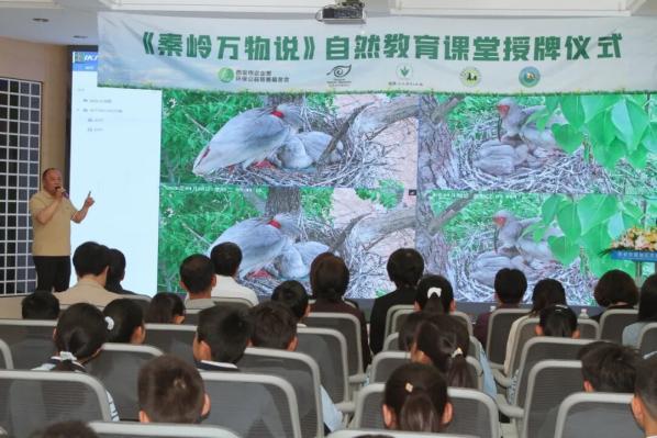 仪式现场内容丰富、互动性强。陕西自然博物馆科普团队带来科普剧《地球回音》,以生动演绎、趣味实验传递生态保护理念,让师生深刻理解人与自然和谐共生的重要意义。活动还跨地域连线了朱鹮的实时影像信号,师生实时观看朱鹮育雏实况。学生代表还送上朱鹮主题作品,并朗读了“鹮从秦岭来,我想对它说”一封信,表达对朱鹮和秦岭生态的热爱。