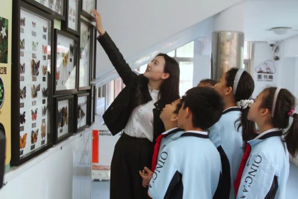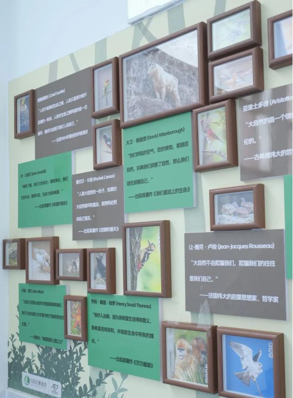揭牌后,嘉宾与师生在陕西自然博物馆王宁老师的引导下,参观了“秦岭万物说”自然教育展示区。该区域由自然博物馆精心策划设计,展区以“一山分南北,万物竞自由”为主题,串联起秦岭的地质变迁、珍稀动植物、昆虫世界等多个板块。从大熊猫、川金丝猴等“秦岭四宝”的科普展示,到陕西羽叶报春、秦岭石蝴蝶等濒危植物标本,再到太白虎凤蝶的成长科普与多样蝴蝶标本,全方位呈现秦岭生物多样性之美,将广袤秦岭的万般美好,浓缩在校园一方小小天地里。